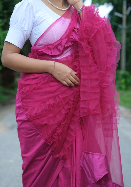 Introducing the Do Pallu Saree — a contemporary twist on traditional elegance. This detachable double pallu saree lets you wear two contrasting moods in one look. From rich mustard silk textures to dramatic magenta net frills, this piece lets your personality shine in every drape.